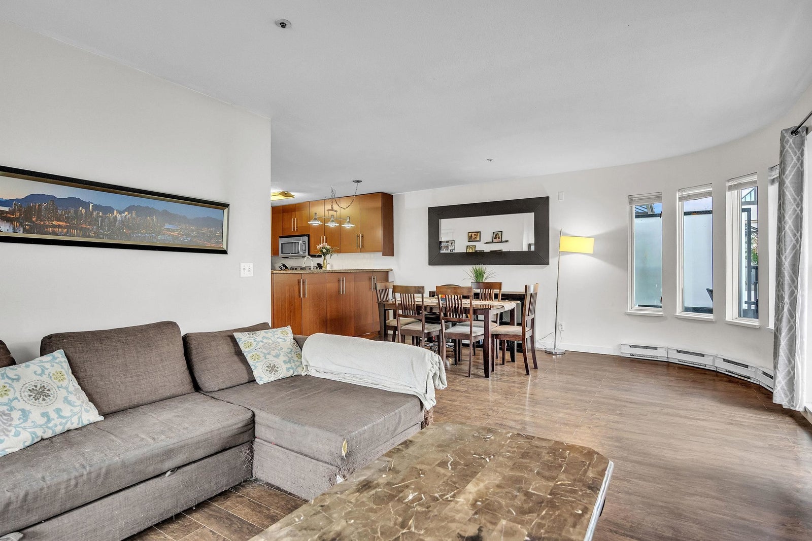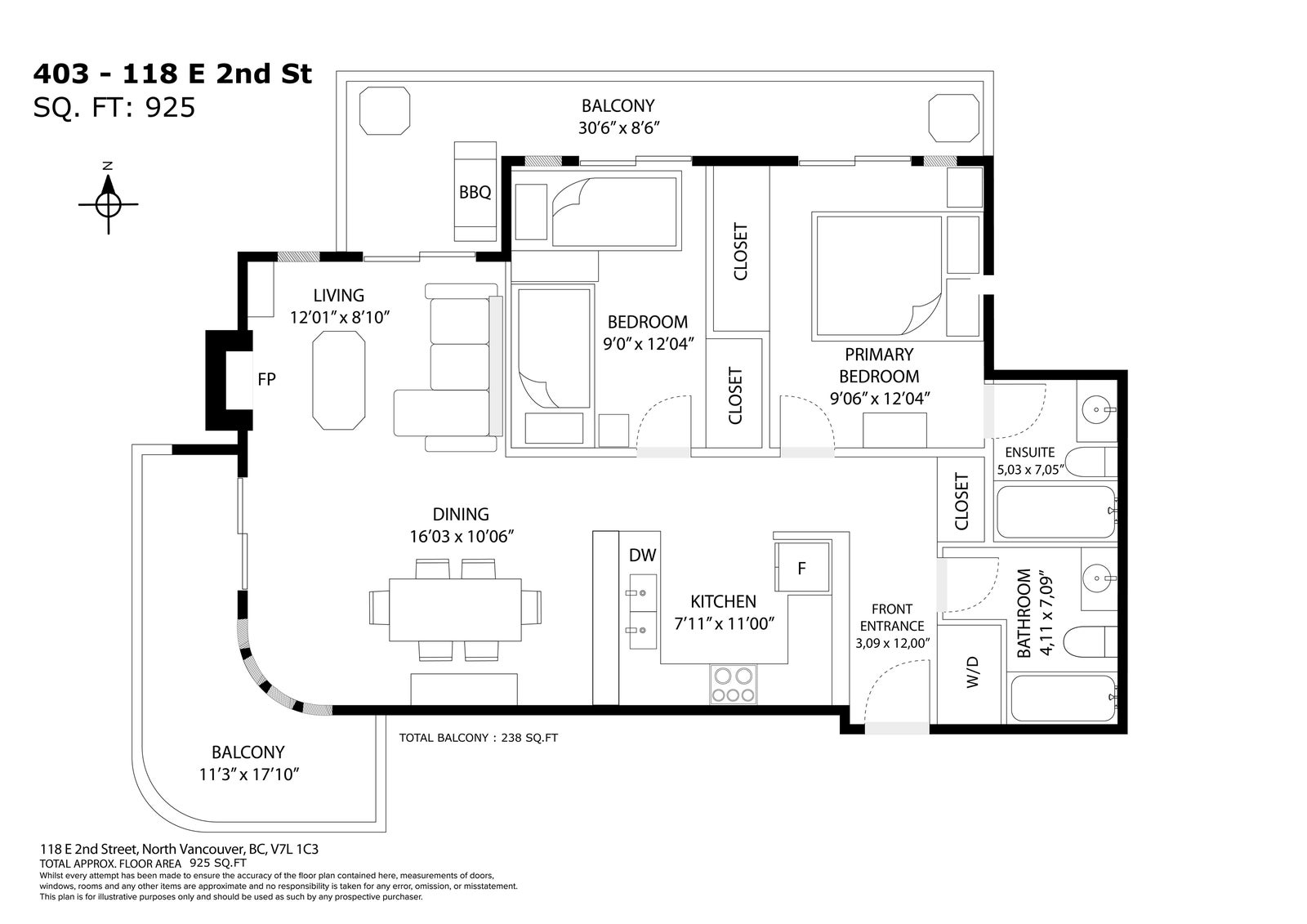 Bright and spacious 2-bedroom, 2 full bath apartment in a boutique building in the heart of Lower Lonsdale. This 925 sq ft home features an open-concept layout with a tastefully updated kitchen including granite counters and stainless steel appliances. Engineered hardwood flooring, in-suite laundry, and a cozy gas fireplace add comfort and style. Enjoy two private sundecks with pleasant city and water views. Just a short stroll to the SeaBus, Lonsdale Quay, the Shipyards, Brewery District, shops, restaurants, and the vibrant LoLo lifestyle. Includes 1 secured parking stall and a generous storage locker. Rentals allowed and up to 2 pets welcome. Rainscreened building (2005). A fantastic opportunity in one of North Vancouver’s most desirable neighbourhoods.